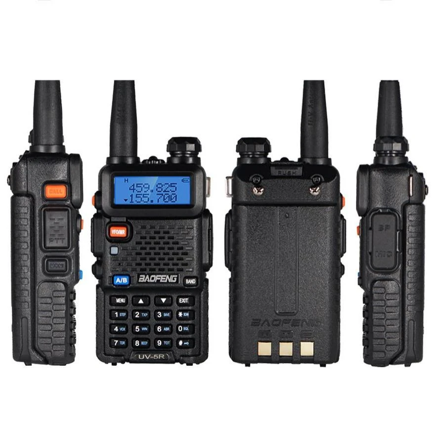 The Baofeng UV-5R is a handheld UHF/VHF dual-band walkie-talkie, supporting a wide frequency reception range of 136-174MHz (VHF) and 400-520MHz (UHF), and also features FM radio functionality.