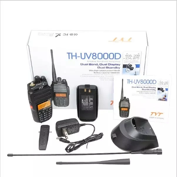The TYT TH-UV8000D is a high-performance handheld walkie-talkie designed for amateur radio enthusiasts. Featuring VHF/UHF dual-band support, this upgraded version provides a long-range communication solution with up to 10 km coverage under optimal conditions. Equipped with a cross-band repeater function, it allows extended communication between different frequency bands, making it ideal for both personal and professional use.
